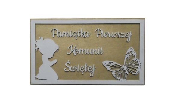 Tabliczka " Pamiątka Pierwszej Komuni Świętej " dziewczynka - Złoto biała