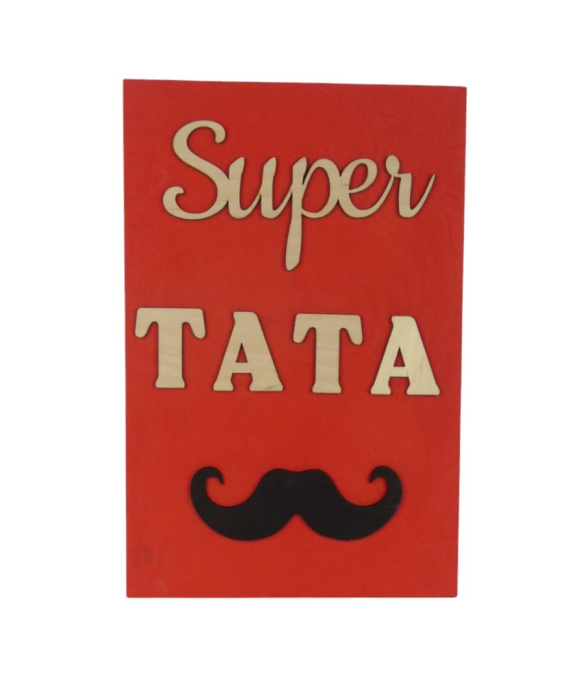 Drewniana tabliczka „ Super Tata ” - Czerwona