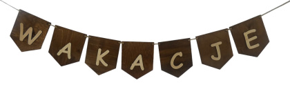 Girlanda wykonana została ze sklejki drewnianej, litery tworzące napis zostały przyklejone, dzięki czemu napis jest wypukły.