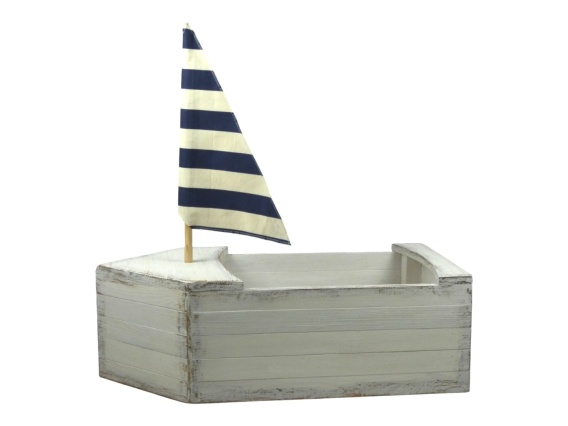 Duża łódka z żaglem - Biały postarzany