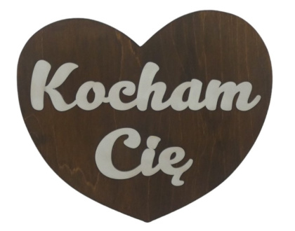 Tabliczka w kształcie serca w kolorze brązowym z napisem "Kocham Cię Mamo".