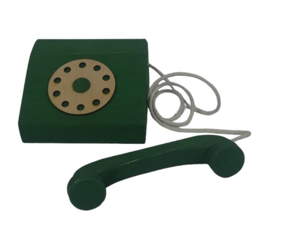 Drewniany telefon stacjonarny o wymiarach 14*12*7cm